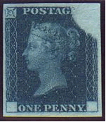 Rowland Hill wanted to see what the proposed new stamps would look like in the revised colours and requested that sheets of the new stamps be printed in the red brown ( which was eventually to be used for the new style penny stamp) as well as two sheets in blue - a full deep blue and Prussian blue. The Penny Blues, as these stamps became known as were thus an unissued postage British postage stamp that formed part of Rowlands Hills experiments with different coloured inks. Some of these ‘test’ blue stamps made it onto letters, but the fate of most of the 1840 test impression is unknown.